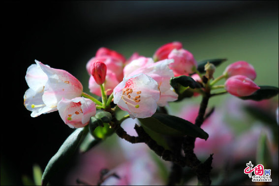 由于氣溫隨海拔升高直線遞減,初夏時令,黃山風(fēng)景區(qū)春光融融,風(fēng)輕日暖,杜鵑花俏然盛開,鮮紅的花蕾,初開后,花瓣變成粉紅色,一株株的黃山杜鵑花在群山中顯得格外嬌媚,無限風(fēng)光令游客陶醉其中。杜鵑花盛開不僅為黃山增添了春意,更為來該景區(qū)的游客增添了興致,一位來自武漢的團隊游客端起相機留戀在花從中,把杜鵑花珍藏。