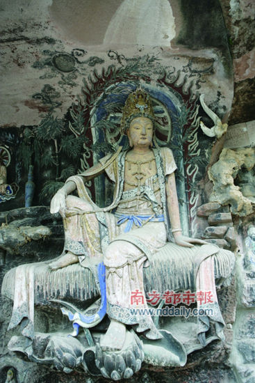 安岳縣是目前中國已知的中國古代佛教造像遺址最集中的縣,這里的石刻“上承敦煌,下啟大足”,題材融合佛、道、儒及經(jīng)變等,被譽為“我國古代雕刻又一偉大寶庫”。需要特別推薦的,是安岳石刻中最為著名的“紫竹觀音”,為眾多觀音造像中神韻獨具的一尊,體態(tài)婀娜,半倚斜坐,沒有通常的肅穆,卻有幾分嫵媚,被稱為“東方維納斯”。