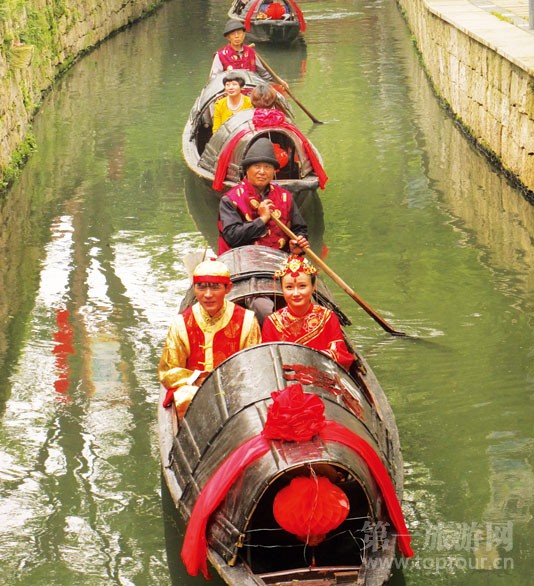 ????當(dāng)時(shí)代開始向傳統(tǒng)致敬,選擇烏篷船作為迎娶新娘的交通工具已成為最時(shí)髦的方式。