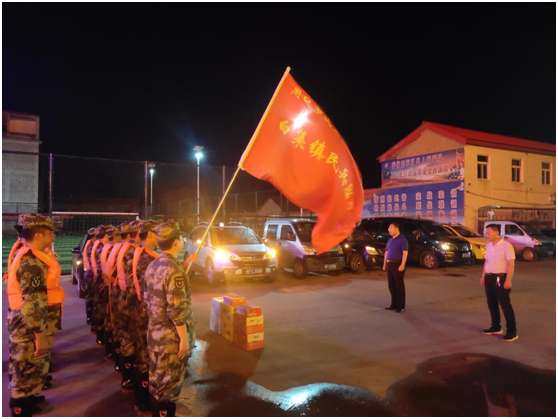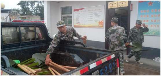 預警就是命令,白集鎮(zhèn)人武部21時即刻發(fā)出通知,來自全鎮(zhèn)的24名基干民兵迅速集結(jié)到鎮(zhèn)政府,準備鐵鍬、雨衣、手電筒、對講機等物品100余件,汽車6輛,鏟車1輛,運輸車2輛,“白集鎮(zhèn)民兵應急排旗幟”1支。