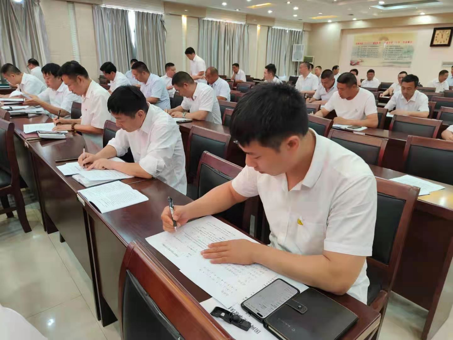 此次測試答題采取書面答卷的形式進(jìn)行,考題以單項選擇題、多項選擇題以及簡答論述題三種形式為主,旨在全面檢驗公司黨員干部學(xué)習(xí)貫徹黨紀(jì)政紀(jì)條規(guī)的學(xué)習(xí)成果,促進(jìn)大家自覺“學(xué)紀(jì)、知紀(jì)、遵紀(jì)”。