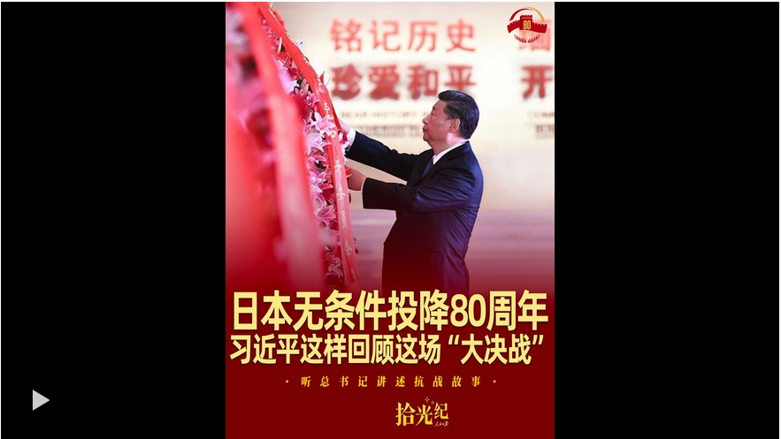 “中國人民抗日戰(zhàn)爭和世界反法西斯戰(zhàn)爭,是正義和邪惡、光明和黑暗、進(jìn)步和反動(dòng)的大決戰(zhàn)?!便懹浛箲?zhàn)歷史,總書記話語鏗鏘。經(jīng)過14年抗戰(zhàn),1945年8月15日,日本宣布無條件投降。