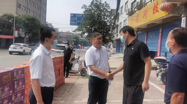 8月19日,國網(wǎng)鄲城縣供電公司總經(jīng)理李宏偉、黨委書記王磊到?jīng)潮苯值擂k事處開展“四送一助力”行動,送去了礦泉水、火腿腸等常用物品。